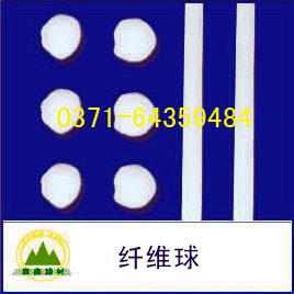纖維球是以纖維球直徑的長度為節距,用細繩將纖維絲束扎起來,在扎接中間的中央處切斷纖維絲束,形成大小一致的球狀纖維濾料。特點是彈性好、耐機械變形。