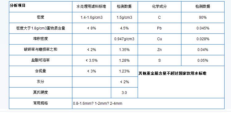 無煙煤濾料在水處理中起的作用好壞,直接影響濾過的水質(zhì),所以在選擇無煙煤濾料的時(shí)候,質(zhì)量必須符合國家相關(guān)標(biāo)準(zhǔn)。下為建設(shè)部水處理濾料監(jiān)督檢測中心頒布的CJ/T43 -2005《水處理用濾料》中無煙煤濾料的相關(guān)標(biāo)準(zhǔn)。